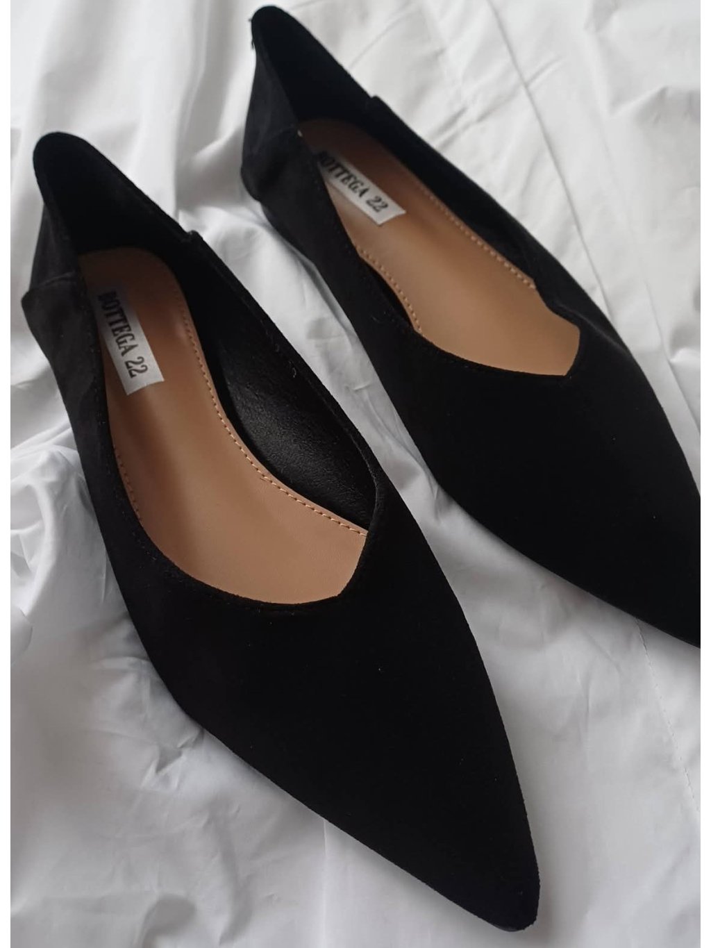 Elegantní semišové baleríny se špičatou špičkou – Černé