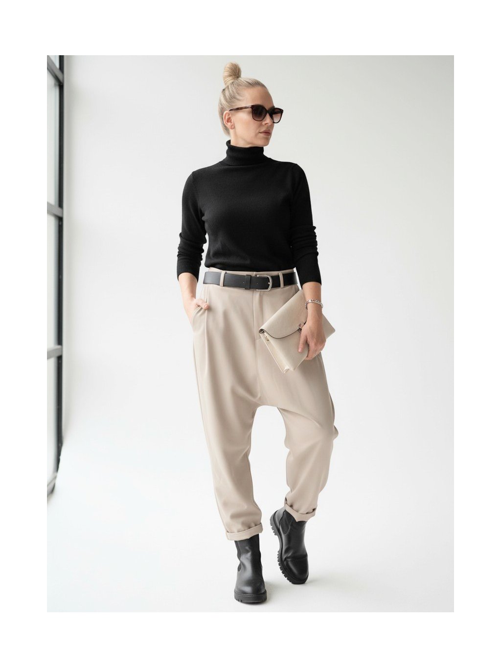 Béžové kvalitní kalhoty se sníženým sedem (tzv. baggy nebo harémky) jsou přesně tím kouskem, který oživí váš šatník.