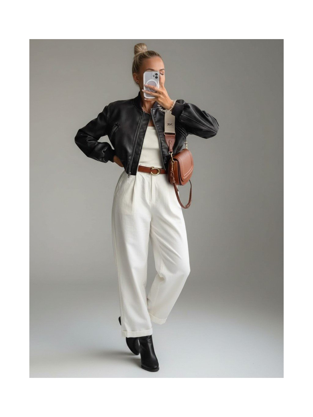 Stylový bomber jacket z ekokůže upoutá pozornost Bunda má moderní zkrácený střih (cropped), který skvěle zvýrazní pas, a je doplněna klasickými žebrovanými náplety na límci, rukávech a spodním lemu. Zapínání je řešeno kovovým zipem.